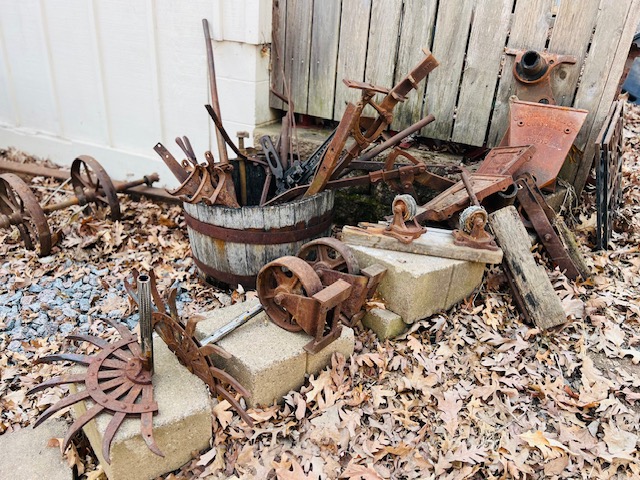 The great thing about metal is it is versatile. You can strip something down to pieces and use those pieces to rebuild something completely different, the only thing that stands in your way is the limits of your imagination. The metal we use comes from many different sources and only has two requirements: old and rusty. We have scoured antique stores for rusty items that once had a loving home, just waiting for their next purpose.